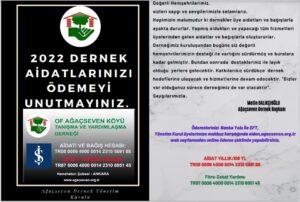 Lütfen Dikkat: Açıklama Kısmına 2022 Dernek Aidatı,Baba Adı ve Güncel Telefonuzu Eklemeyi Unutmayınız.