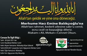 Merhume Hacı Emine Balıkçıoğlu’na Allahtan rahmet, geride kalan kederli ailesine başsağlığı dileriz.