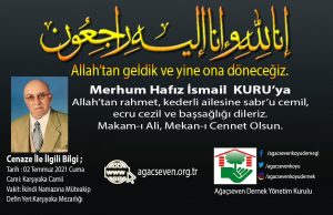 Merhum Hacı Hafız İsmail Kuru‘ya Allahtan rahmet çocukları Sadık,Ayşe,Turgut ve Turan ve geride kalan kederli ailesine başsağlığı dileriz.