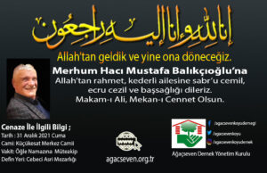 İbrahim Lütfü oğlu Hacı Mustafa Balıkçıoğlu 30 /12/2021 Perşembe günü Ankara’da “Rahmeti Rahmana” kavuşmuştur.