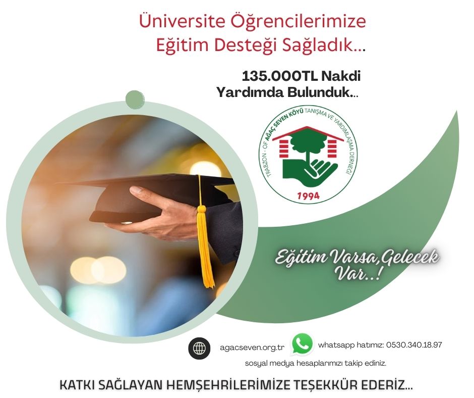 1 Ekim 2023 tarihli “Üniversite Öğrencilerimize 2023 Yılında da Eğitim Desteği Sağlıyoruz”. haberimize ağaçsevenli hemşerilerimizin üniversitede eğitim gören öğrencilerine yönelik , oluşturulan başvuru formu üzerinden1-20 ekim tarihleri arasında başvuru talepleri alınmıştır. Son talep tarihi 20 Ekim olarak belirlenmiş ancak, yönetim kurulumuza ve üyelerine haber kaynağımıza ulaşamayan veya bilgisi olamayan öğrencilerin olduğu bilgisi gelmiştir. Yönetim Kurulumuz bunun üzerinden çevrimiçi toplanarak başvuru süresinin 12 Kasım 2023 tarihine kadar uzatılmasına kara vermiş ve kararını toplu SMS ile tekraren duyurmuştur. Ek başvuru formlarını tekrar değerlendirilmiş ve incelenmiştir. İnceleme sonucunda öğrencilerimizin derneğimiz ile paylaştıkları hesap numaralarına bu gün 13 Kasım itibari ile eğitim ödenekleri başvuru yapan tüm öğrencilerimiz ayırt edilmeksizin eşit olarak hesaplarına tek seferlik olmak üzere nakdi olarak yatırılmıştır. Toplam Eğitim desteği 135.000 TL ‘dır. Hemşerilerimiz tarafından yapılan yardımları ihtiyaç sahibi yarınımız olan gençlere ulaştırmanın sevinci ve gururunu yönetimce yaşamaktayız. Güveniniz ve yardımlarınız için teşekkür ederiz.