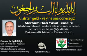 Merhum Hacı Yusuf Temel’e Allahtan rahmet kederli ailesine ve yakınlarına başsağlığı dileriz.